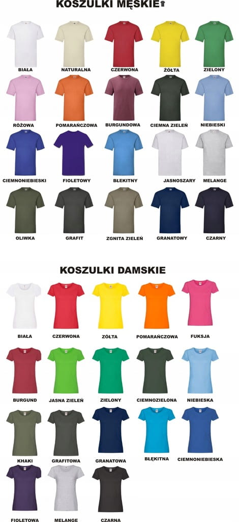 Po dokonaniu zakupu prosimy o podanie koloru i rozmiarów koszulek.